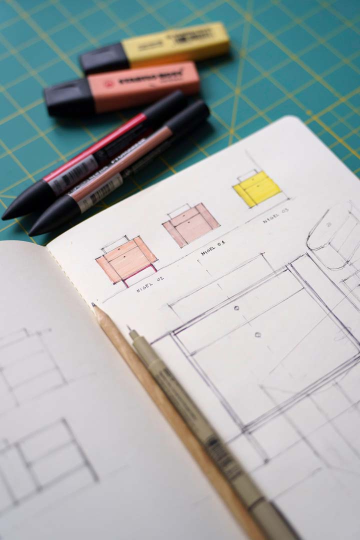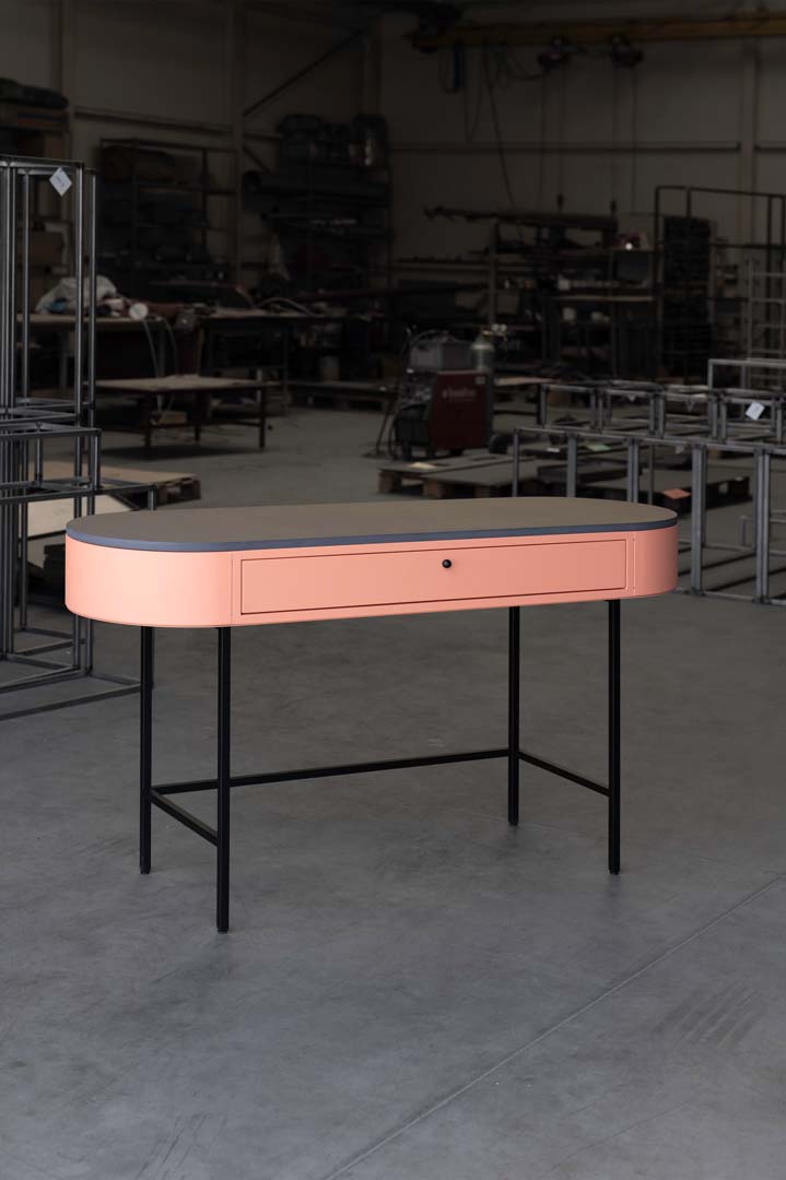 Proces projektowy każdego mebla zaczyna się od szkiców, a inspiracje czerpiemy często z uwielbianego przez nas modernizmu. Kolejnym krokiem jest tworzenie modeli 3D w profesjonalnym oprogramowaniu. Profile i arkusze blachy docinamy laserowo, przed spawaniem konstrukcji przez naszych najlepszych rzemieślników.
