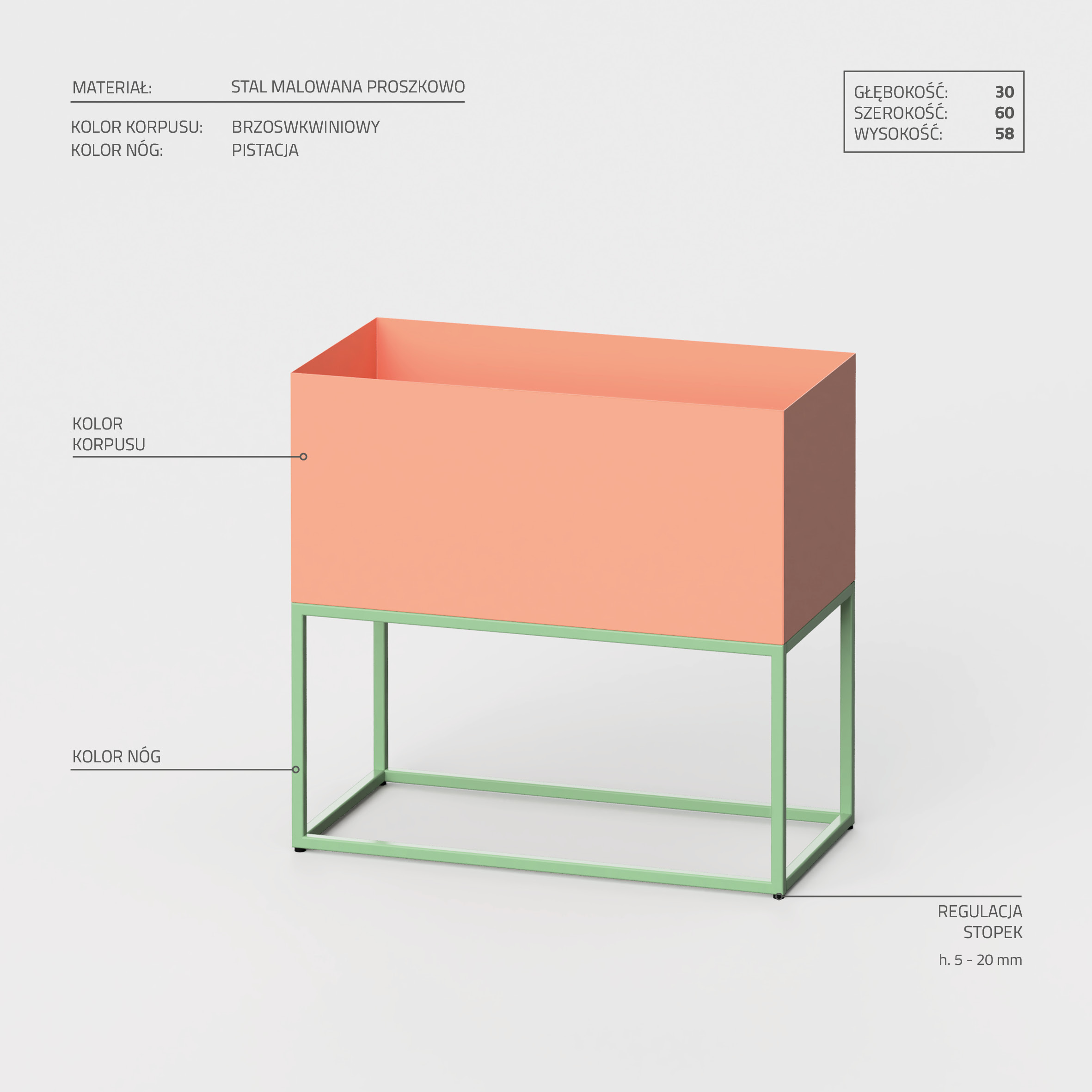 Dla tych, którzy chcą, aby ich rośliny zajmowały centralne miejsce w domu, ta podłużna osłonka na doniczkę jest doskonałym wyborem. Jej prosta, minimalistyczna konstrukcja na smukłych, metalowych nóżkach sprawia, że roślina jest doskonale wyeksponowana, zyskując więcej światła i przestrzeni. Jest idealna zarówno do mniejszych, jak i większych roślin, które potrzebują stabilnej, ale jednocześnie eleganckiej oprawy. Można ją ustawić przy ścianie, pod oknem, a także na środku pomieszczenia, co daje dużą swobodę aranżacyjną. Jej subtelna forma pasuje do nowoczesnych wnętrz, wnosząc jednocześnie element lekkości. Dla wygody i ochrony przed wilgocią, sugerujemy wyłożenie wnętrza osłonki czarną folią do kwiatów.