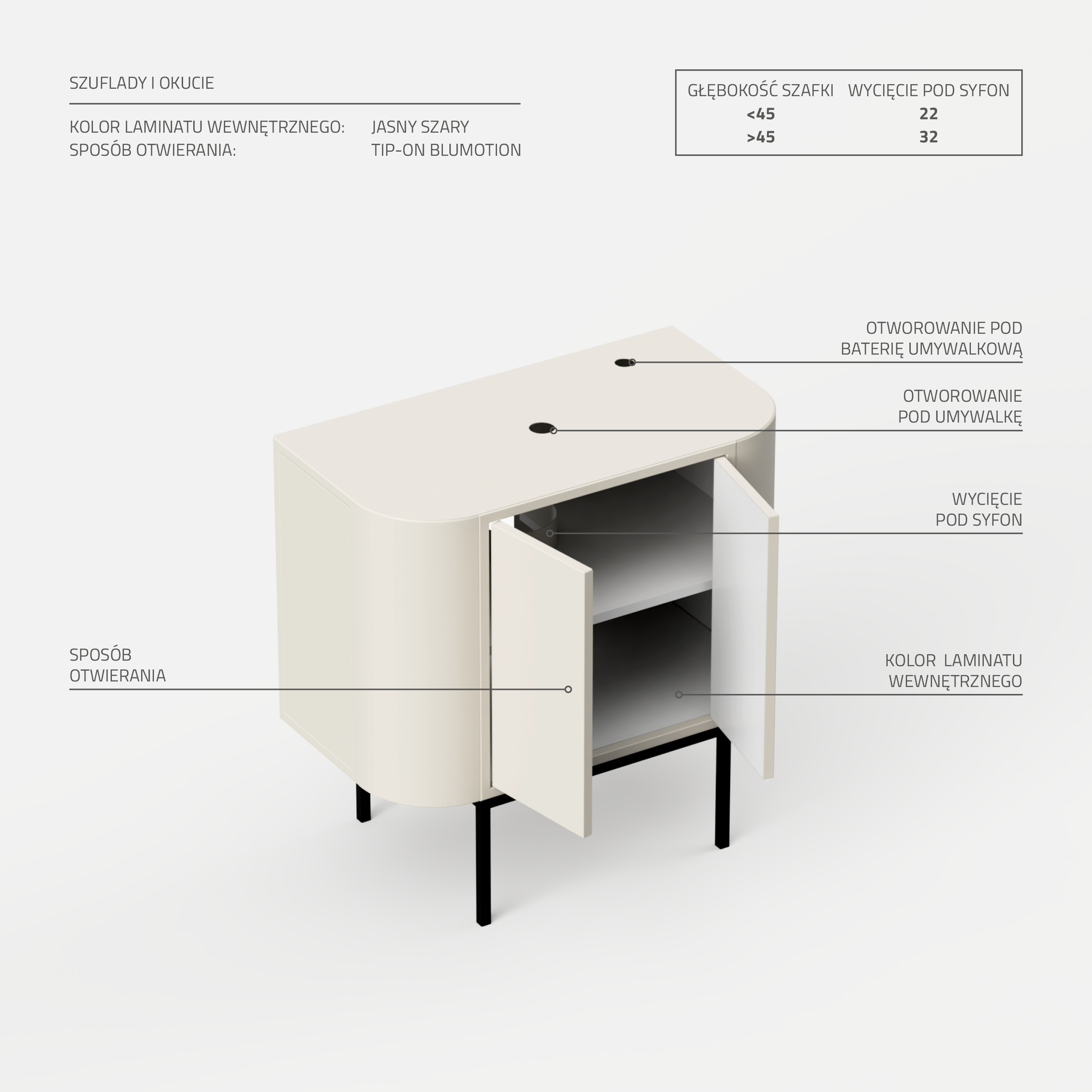 Szafka łazienkowa ALBA 02 to połączenie nowoczesnego designu z praktyczną funkcjonalnością, której potrzebujesz w swojej łazience. Ta designerska szafka nie tylko sprawi, że Twoja łazienka nabierze stylowego charakteru, ale również dostarczy Ci niezbędnego miejsca do przechowywania.