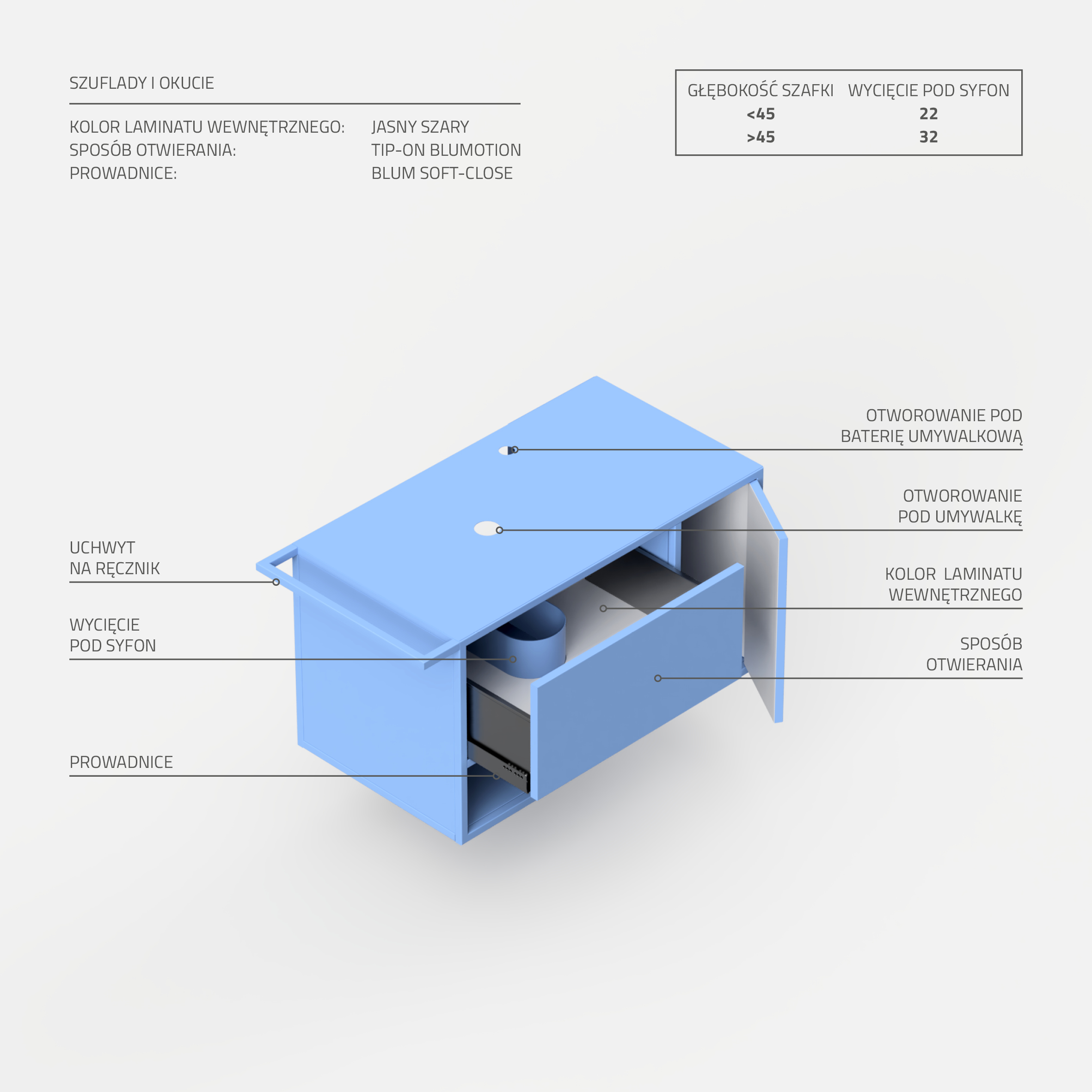 Szafka łazienkowa KALDEZJA 01 to wyjątkowy produkt, który bez trudu znajdzie swoje zastosowanie w każdym pomieszczeniu. Jeśli szukasz w pełni nowoczesnego mebla pod umywalkę, nie mogłeś trafić lepiej. Ten produkt od DESIVA z pewnością cię zachwyci nie tylko designem, ale też i funkcjonalnością.