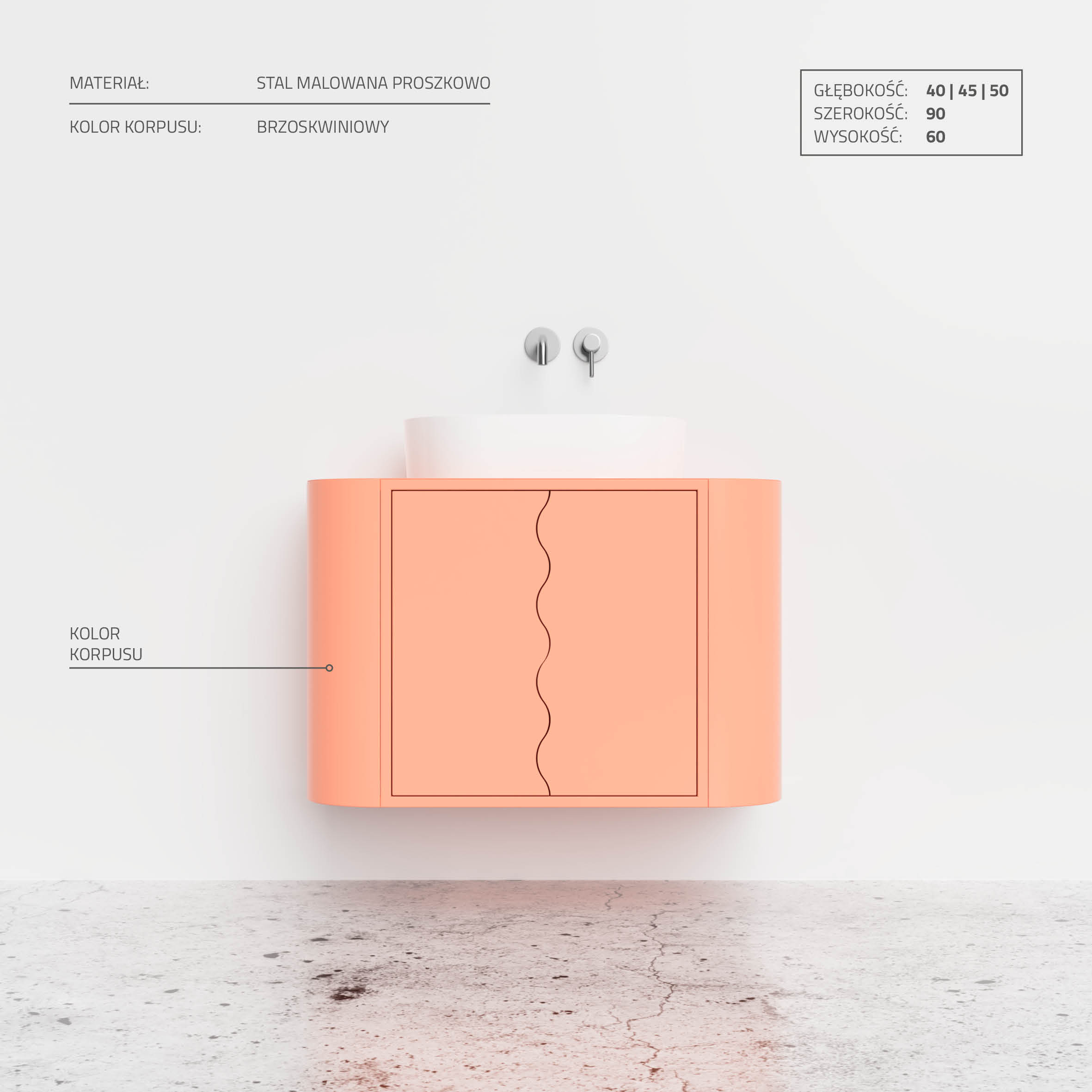 Wybierając szafkę łazienkową stojącą SWELL masz możliwość wyboru najwygodniejszych dla siebie rozwiązań, oraz niesamowity zakres modyfikacji wizualnych. Poza tak prostymi kwestiami jak wybór jednego z sześciu rozmiarów szafki (istnieje również możliwość dostosowania wymiarów pod konkretnego klienta), wybrać można jeden z pięciu sposobów otwierania szafki (od klasycznych gałek, po nowoczesny system Tip-on), rodzaj umywalki, którą na szafce zamontujemy (od tego zależy kształt i rozmiar przygotowanego otworu) i sposób montowania baterii.