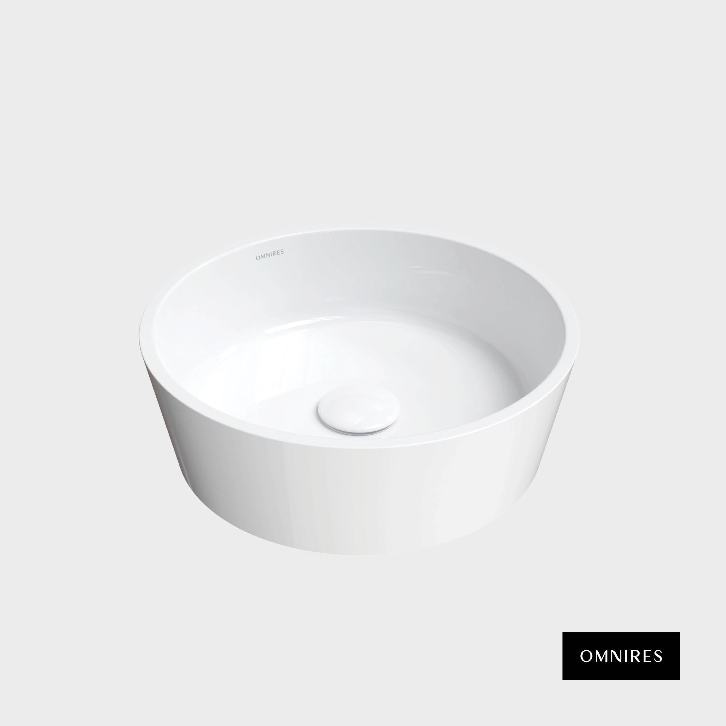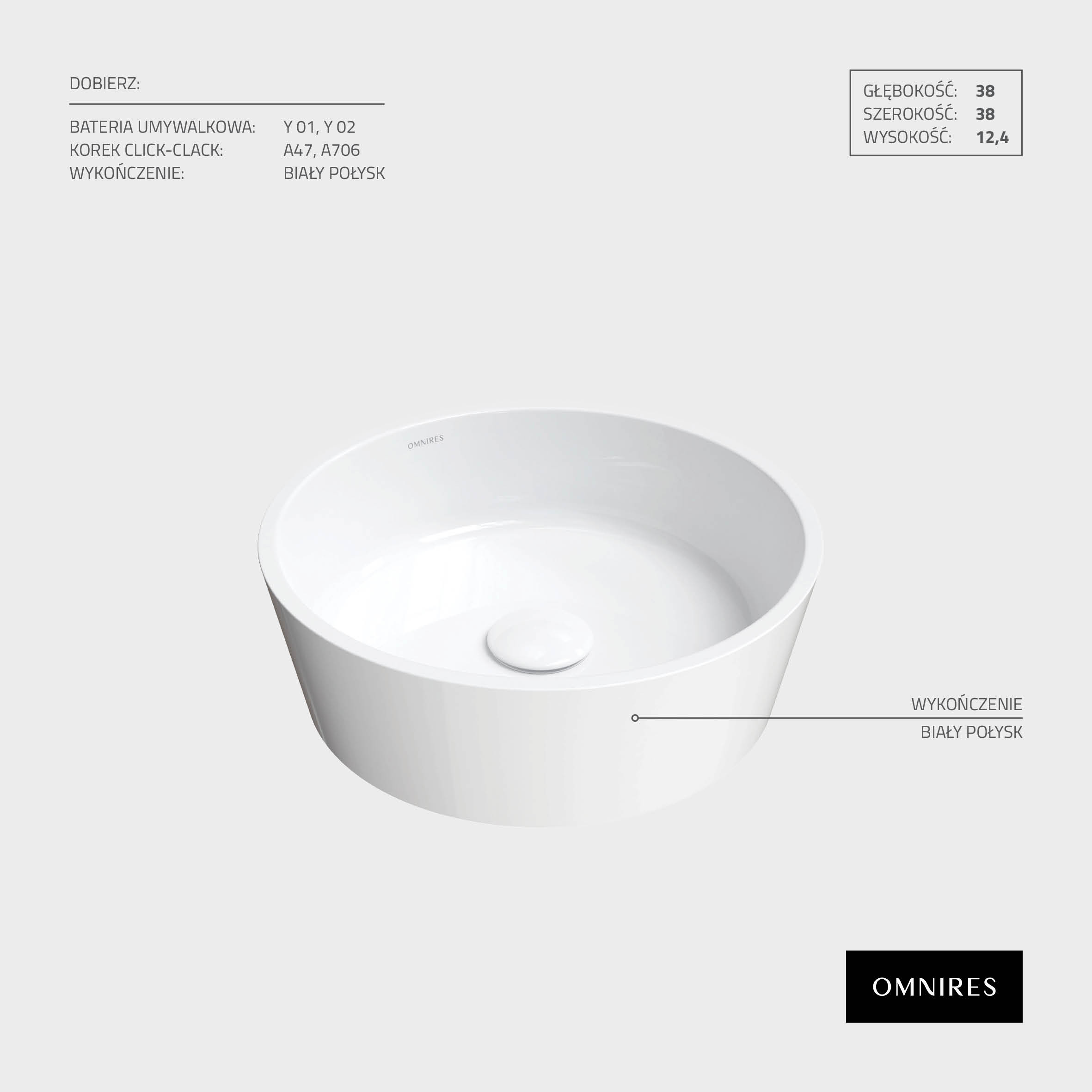 Umywalka nablatowa OMNIRES BARI wyróżnia się regularną formą o nowoczesnym charakterze. Umywalka zachwyca doskonałym kształtem koła i wyważonymi proporcjami. Umywalka została wykonana z materiału kompozytowego (M+), którego głównym składnikiem jest skała dolomitowa. Innowacyjna technologia produkcji gwarantuje perfekcyjne wykonanie każdego detalu, jednocześnie zapewniając wyjątkową trwałość i odporność. Naturalnie odbijająca światło, połyskująca powierzchnia umywalki została wykończona