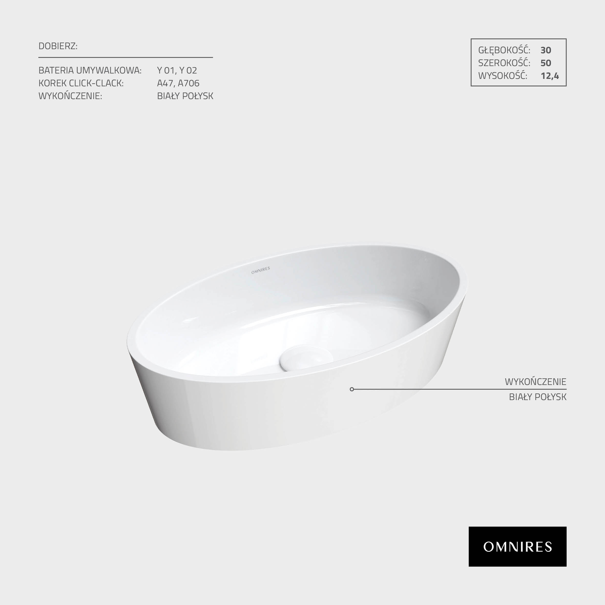 Umywalka nablatowa OMNIRES BARI wyróżnia się regularną formą o nowoczesnym charakterze. Umywalka zachwyca doskonałym kształtem koła i wyważonymi proporcjami. Umywalka została wykonana z materiału kompozytowego (M+), którego głównym składnikiem jest skała dolomitowa. Innowacyjna technologia produkcji gwarantuje perfekcyjne wykonanie każdego detalu, jednocześnie zapewniając wyjątkową trwałość i odporność. Naturalnie odbijająca światło, połyskująca powierzchnia umywalki została wykończona