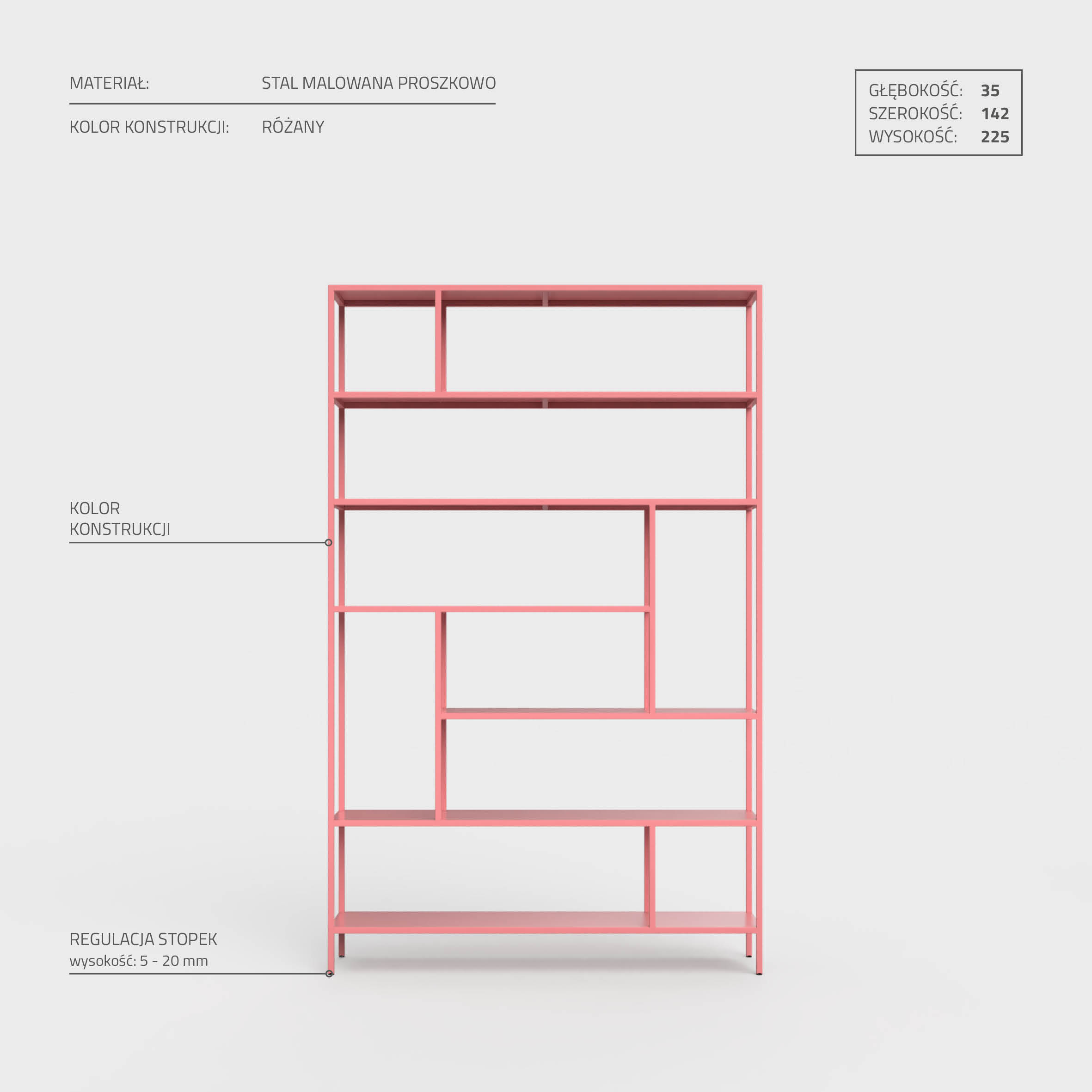 Chcąc wprowadzić do Twojego wnętrza jak najwięcej barw, umożliwiamy Ci samodzielne zaprojektowanie regału i wybór jego koloru spośród aż 40 dostępnych opcji. Do produkcji mebli zastosowaliśmy malowanie proszkowe, które daje Ci gwarancję utrzymania wyrazistości koloru w nienaruszonym stanie przez długie lata bez konieczności dodatkowej konserwacji.