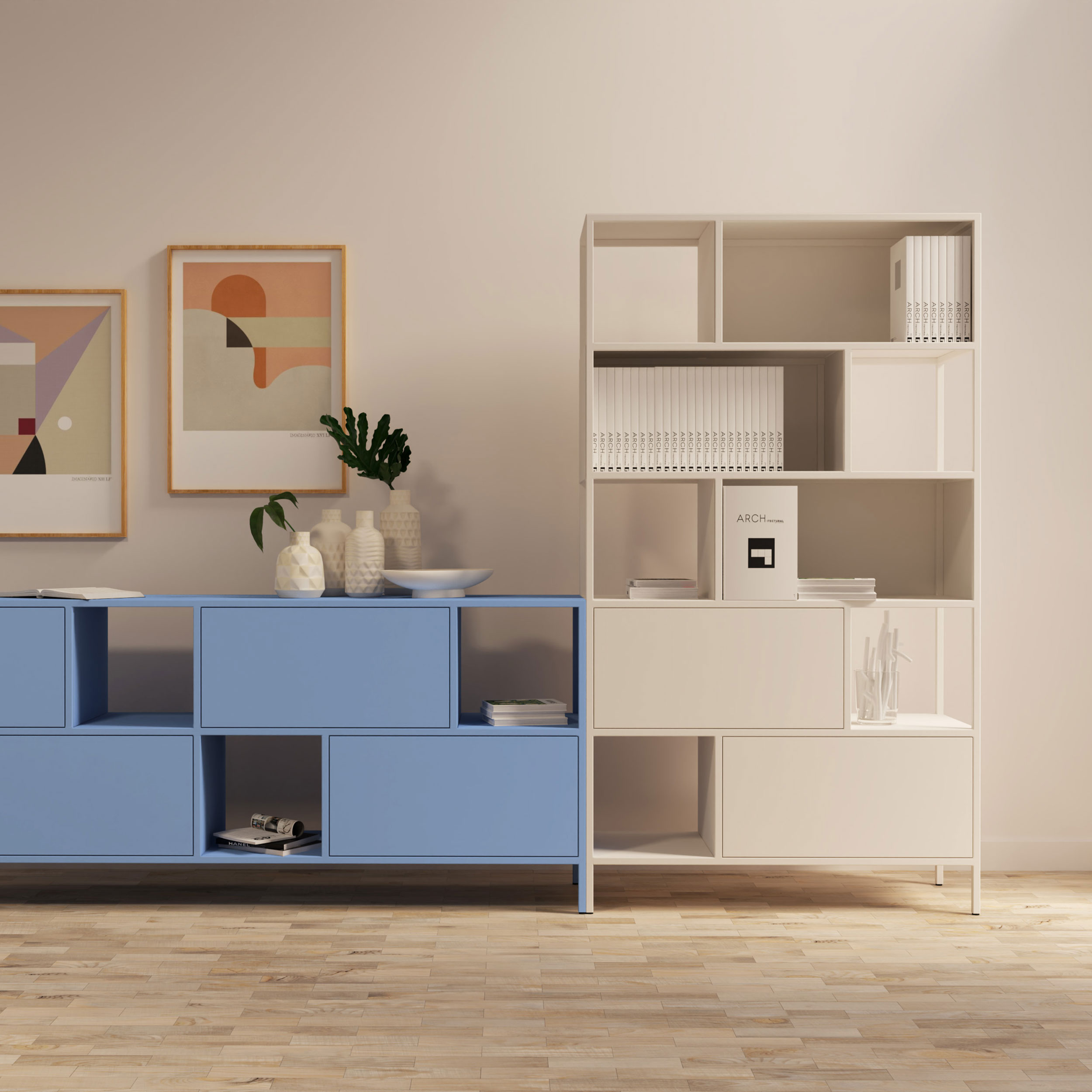 Pragniemy, aby nasze meble spełniały wszystkie Twoje oczekiwania. Umożliwiamy Ci samodzielne wybranie koloru konstrukcji regału oraz odcienia frontów spośród aż 40 dostępnych opcji. Co więcej, zapewniamy wybór wypełnienia wewnętrznego szuflad wśród 8 możliwych wersji. Wszystko to sprawia, że możesz samodzielnie zaprojektować swój wymarzony mebel, który będzie doskonale dopasowany do aranżacji wnętrza. Chcielibyśmy zaznaczyć, że do nadawania koloru naszym meblom używamy techniki malowania proszkowego. Zapewnia ona trwałość i wyrazistość koloru przez długie lata bez ryzyka jego wyblaknięcia.