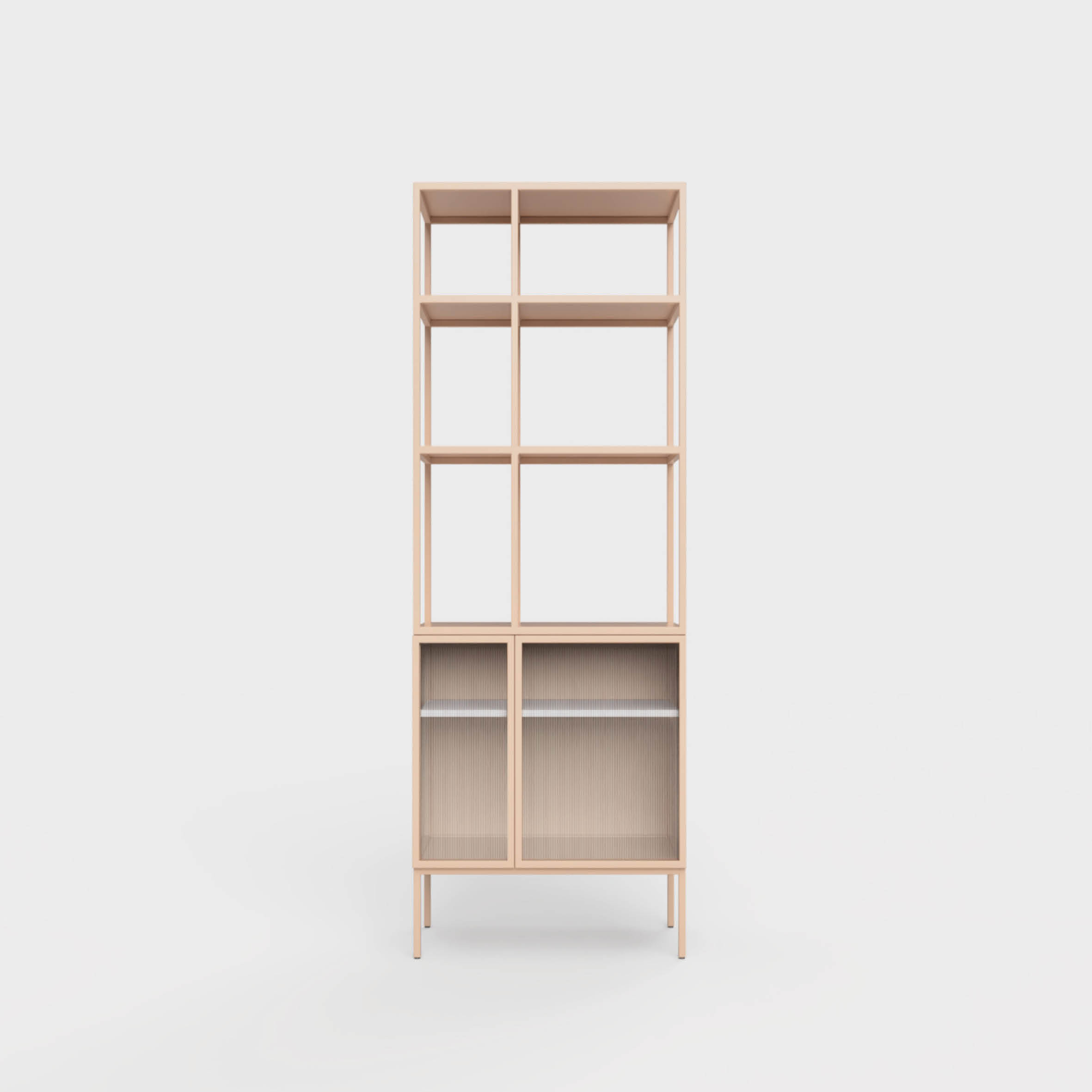 Cały regał ma 205 cm wysokości. Jego pozostałe wymiary to 75 cm x 50 cm. Jego prosta konstrukcja sprawiła, że wiele osób ocenia go pozytywnie, wychwalając pojemne półki oraz szafkę znajdującą się na samym dole. Do wykorzystania będziesz mieć 6 otwartych, asymetrycznych półek. W samej szafce znajdują się cztery półki, które zamknięte są za starannie wykonanymi drzwiczkami ze szkłem ryflowanym. Polecamy Wam zakup tego regału, którego montaż nie będzie w stanie sprawić Wam problemu. Przyślemy do Was przygotowane części, które będziecie musieli tylko połączyć zgodnie z instrukcją obsługi.