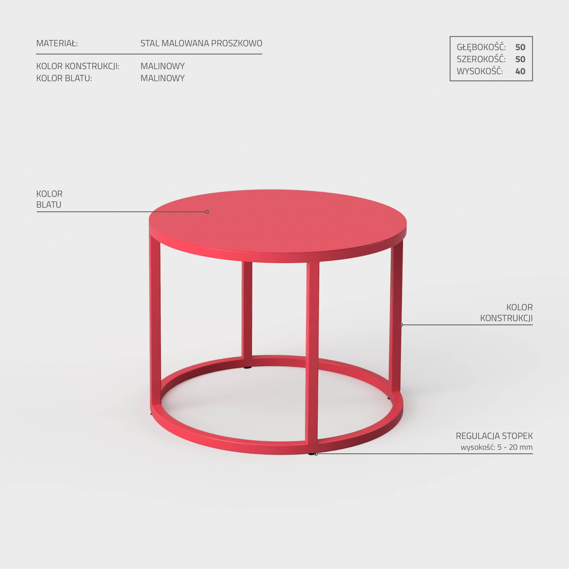 Mały, okrągły stolik MILO 01 to świetne rozwiązanie do mniejszych i większych pomieszczeń. Sprawdzi się zarówno w salonie, sypialni, gabinecie czy na tarasie. Szybka kawa, podstawka pod donicę, miejsce na świeczkę czy ulubioną książkę. Sam zdecyduj, jak go zagospodarujesz. Cztery profile sprawią, że możesz umieścić również coś pod spodem. Może kocie legowisko? Albo kosz do przechowywania bibelotów.
