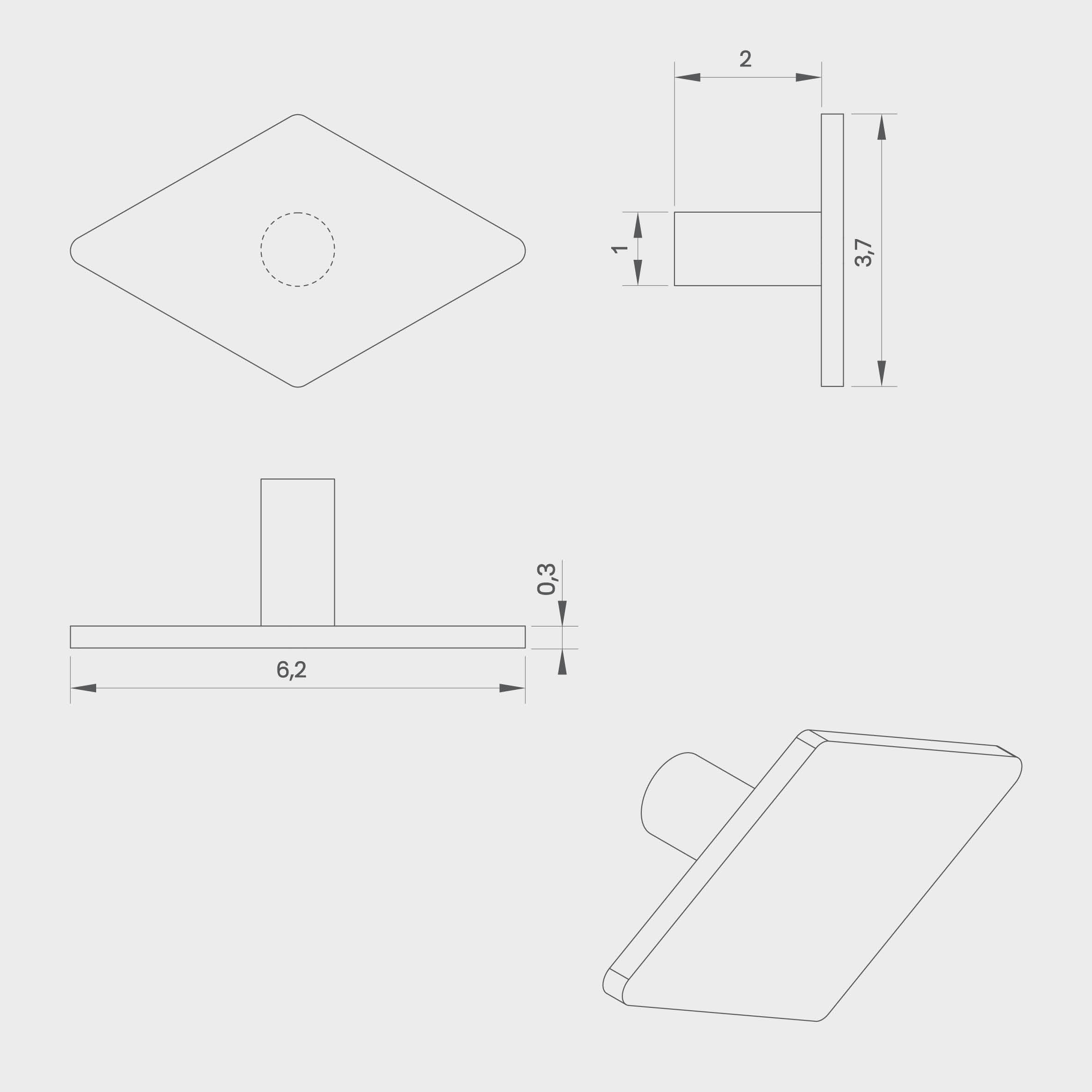 Wyjątkowy uchwyt meblowy w kształcie diamentu na krótkiej nóżce, który zachwyca minimalistycznym designem i unikalną formą. Idealny do wnętrz nowoczesnych, w których geometryczne detale odgrywają kluczową rolę. Wybierz swój ulubiony kolor spośród szerokiej palety odcieni, aby dopasować uchwyt do charakteru pomieszczenia i nadać meblom elegancki akcent.